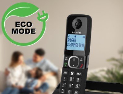تم تصميم الهاتف مع وضع ECO لتقليل استهلاك الطاقة. يتم شحن السماعة فقط عند الحاجة، مما يساعد على إطالة عمر البطارية. كما يتم ضبط قوة الإرسال تلقائيًا أثناء المكالمات حسب المسافة من القاعدة، لضمان أداء فعال.