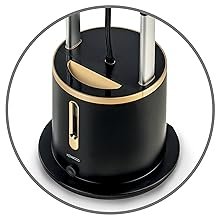 يتميز Kenwood GSP80 بتصميم أنيق يجمع بين اللون الأسود المطفي وتفاصيل ذهبية راقية، ليضيف لمسة فخامة إلى منزلك. يأتي الجهاز مع علاّقتين مزدوجتين للملابس ورأس المكواة، وفرشتين متينتين، وقفازين واقيين، وعجلات سهلة الانزلاق، مما يجعله مثاليًا من حيث المظهر والعملية. يمكنك نقله بسهولة بين الغرف والاستمتاع بتجربة كي متكاملة من لحظة فتح العلبة.