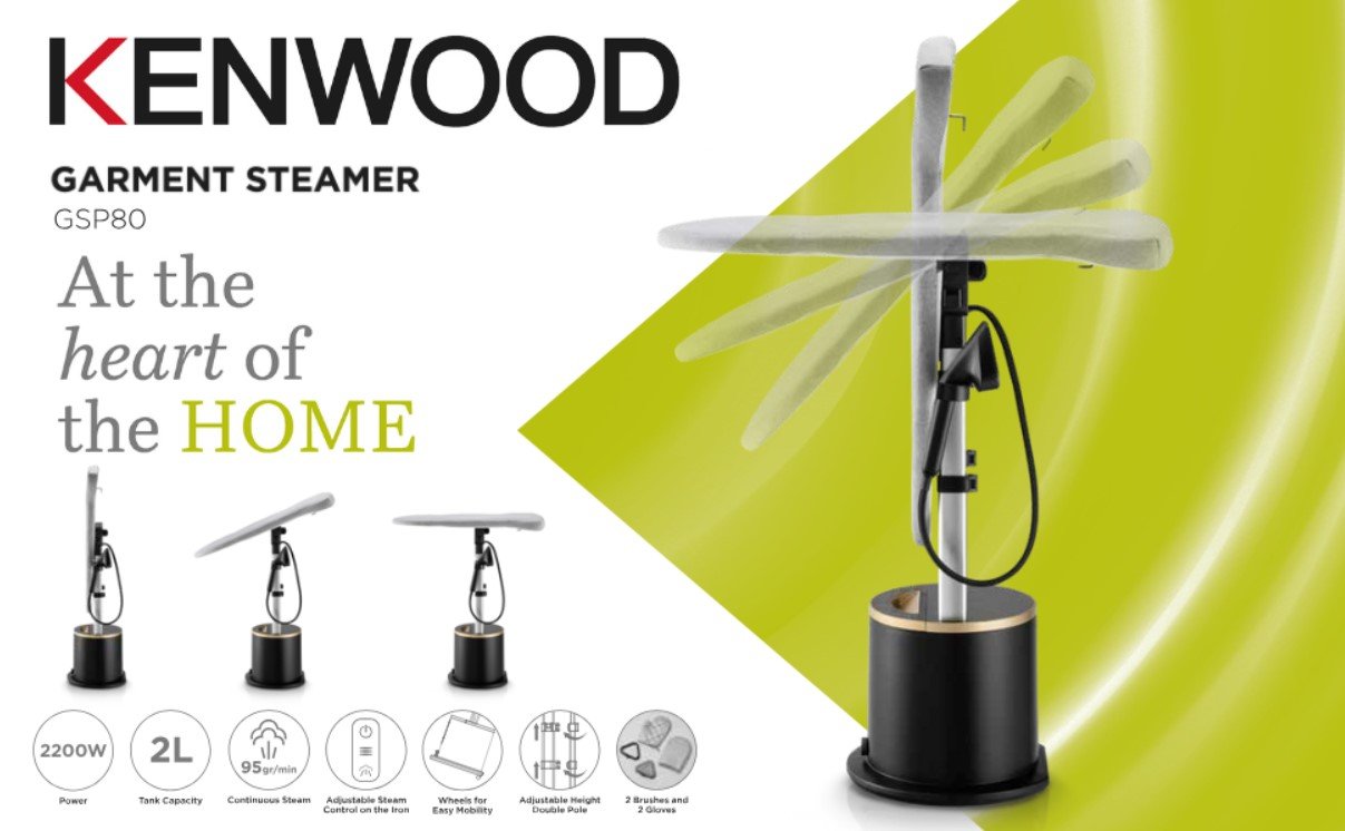 Kenwood Stand Garment Steamer GSP70 – 2000W, 2L Tank, Adjustable 3-in-1 Ironing Board & Continuous Steam