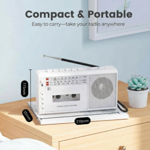يأتي مشغل الكاسيت من بوكسينج مزودًا بمستقبل راديو ثلاثي الموجات FM/AM/SW، مما يتيح لك ضبط عدد كبير من القنوات المحلية والعالمية. وبفضل الهوائي الخارجي، تحصل على استقبال أوضح للإشارة، مما يجعله مناسبًا للأخبار، والموسيقى، والبرامج الحوارية، والبث الدولي — ليكون خيارًا رائعًا للاستخدام المنزلي أو أثناء السفر.
