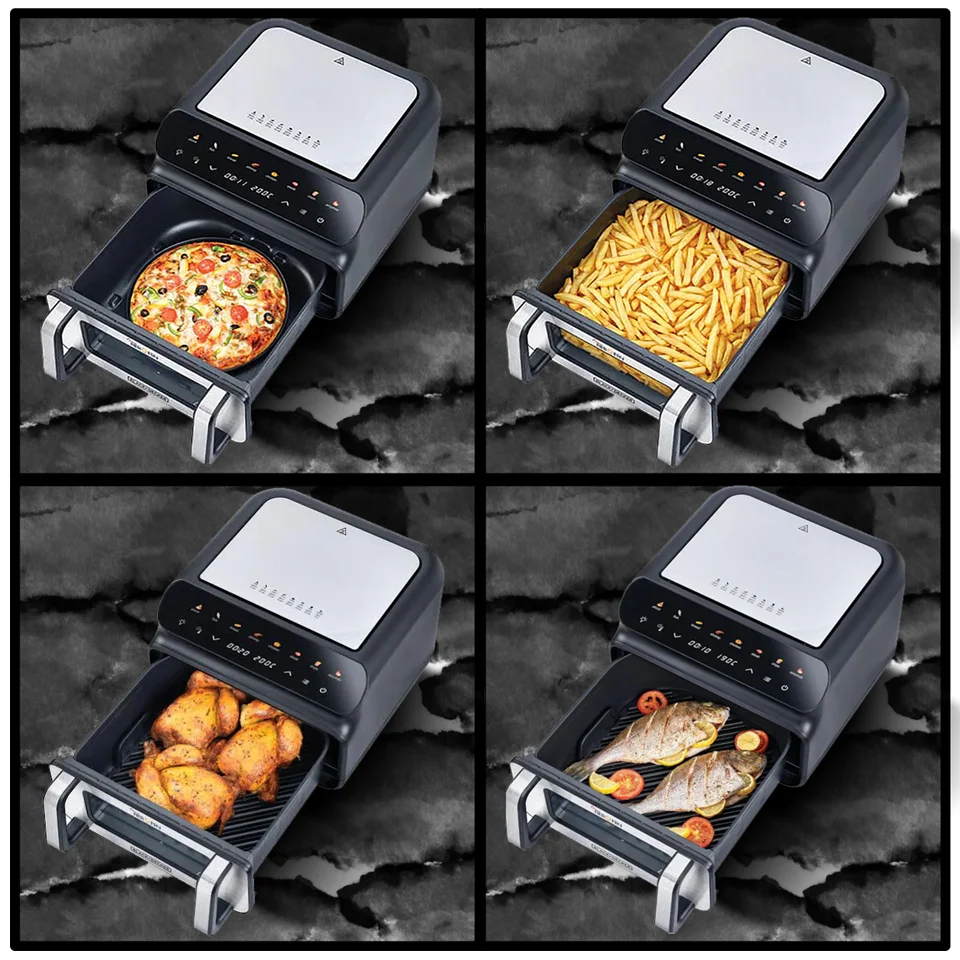 The built-in preheating function ensures even heat circulation throughout the cooking chamber. Preheating helps reduce overall cooking time and guarantees a crispy, golden finish on fries, pizza, roasted chicken, and more.