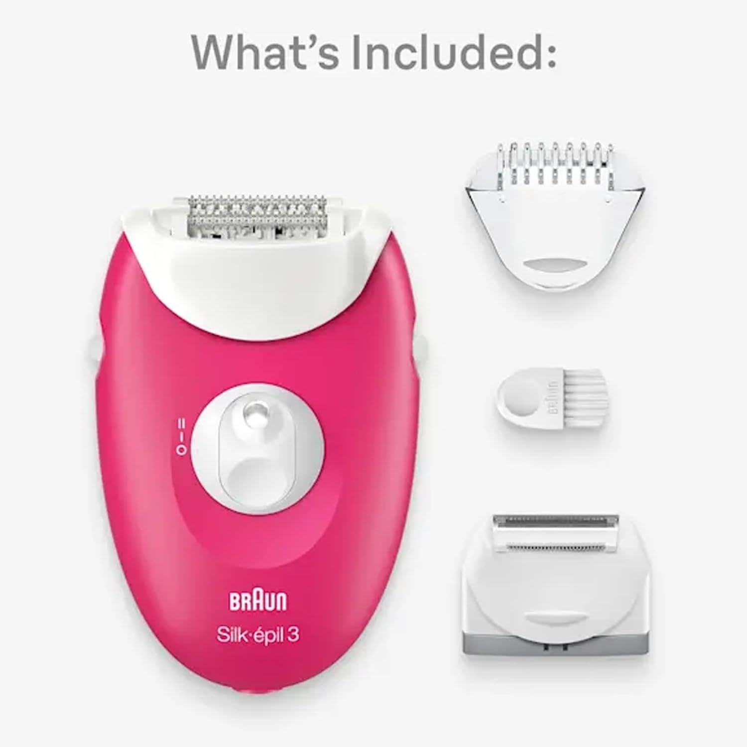 The Braun Silk-épil 3 SE 3-032 is more than just an epilator. It includes a shaver head and trimmer cap, transforming your epilator into a fully functional electric shaver for sensitive areas like the underarms or bikini line. The bikini styler attachment lets you shape and detail with precision — giving you full control over your grooming routine.