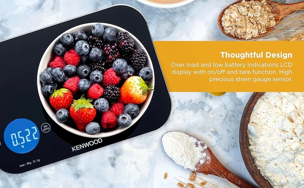 With a 5g–8kg capacity range, the Kenwood WEP50 can handle everything from delicate spice measurements to heavy mixing bowls with ease.